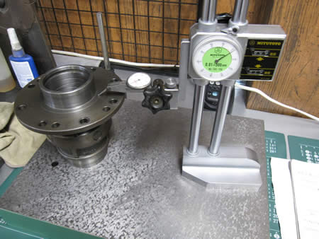 加工の終ったデフキャリアのハイト測定&ケースの内測を行いシム調整の数値を割り出します。