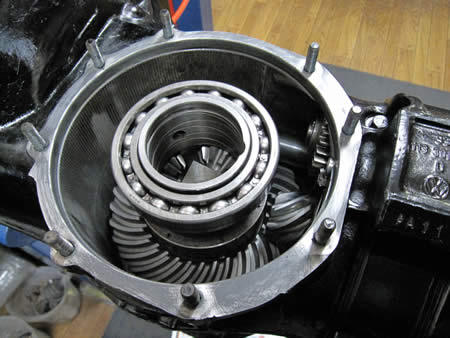 デフをミッションケースに組み込む前に行うのが、サイドギアのクリアランス確認&調整です。