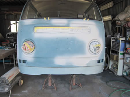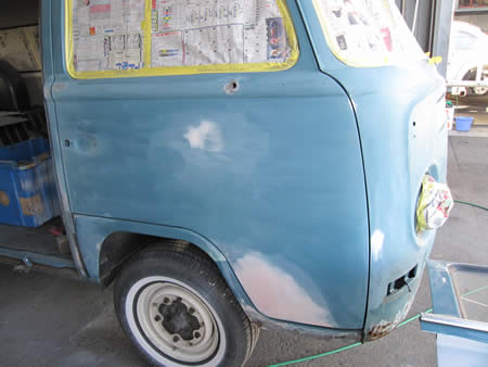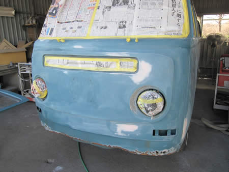 昨年末にご契約頂きました’68BUSの外装補修作業を開始いたしました。