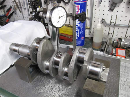 クランクシャフト&カムシャフトの振れ点検、各ジャーナルの摩耗点検を行いました。結果は合格でございます!