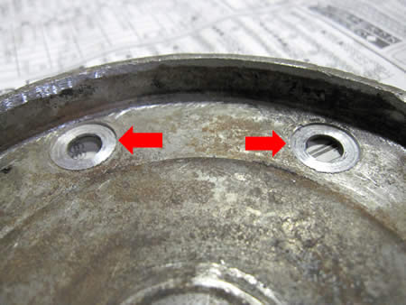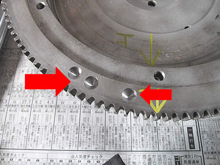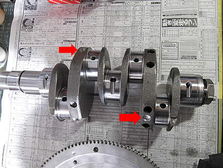 今回のクランク&フライホイールはずいぶんバランスが狂っていたようですね・・・クランクシャフトは裏側にも2ヶ所ドリルホールが開いていました。