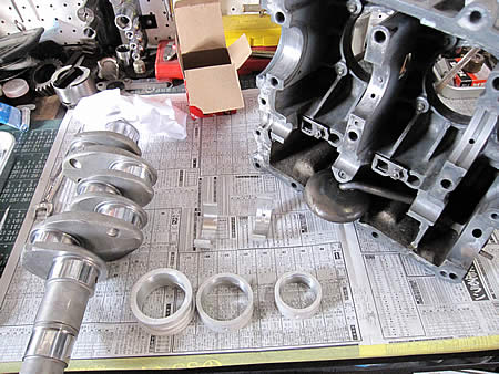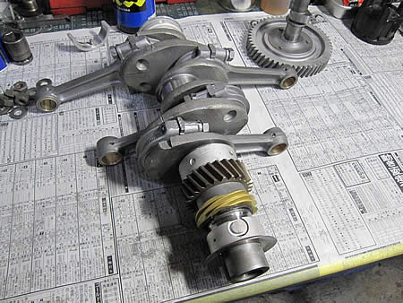 クランクシャフト&カムシャフトの仮組みを行います。