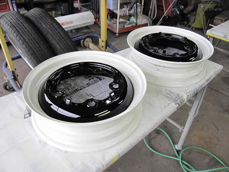ホイールのペイントはセンタのブラックまで入りました。今日中にはリムのホワイトもペイント完了予定です!!!