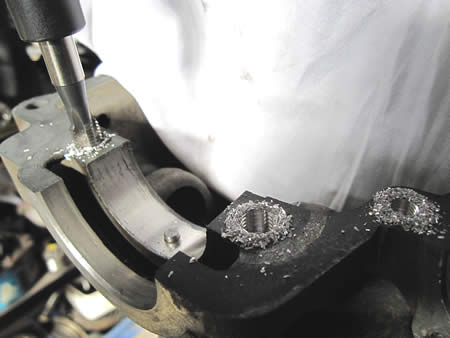 先ず写真左、ケースのスタットボルトのめすネジをヘリサート加工しました。