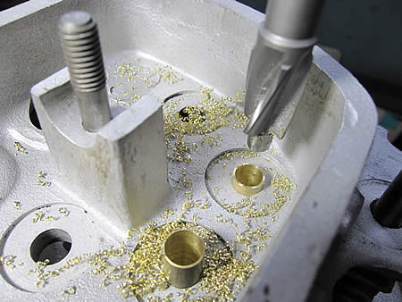 インテークはいつもの方法で問題なく抜けそうですけど・・・エキゾースト側はショルダーを切削してロッカー側から抜く事にしました。