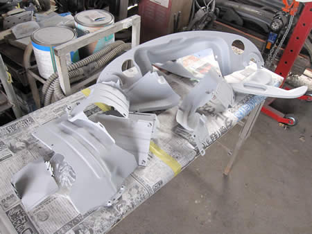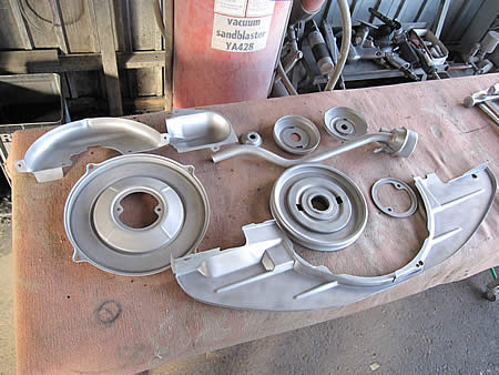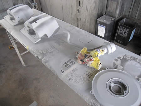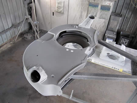 エンジンカバー類を剥離&ブラスト処理した後サフェーサーまで入りました!