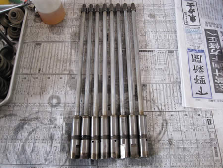 続いてバルブガイドの研磨作業です。