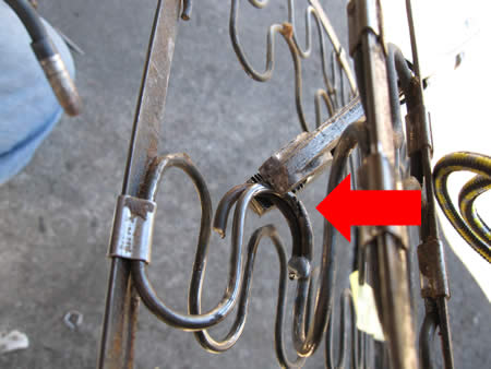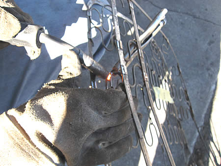 パーツ取りにしたシートフレームからスプリングを切り出し、“骨折”している部分に溶接して補強します。