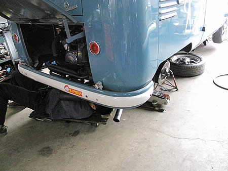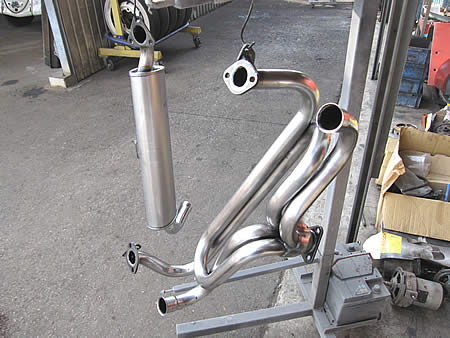 リア車高の再調整&マフラーの最終加工を行っています。