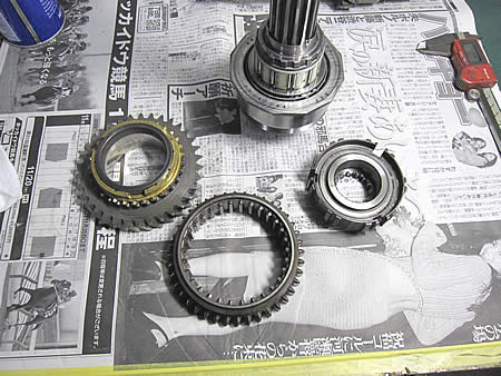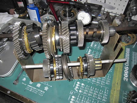 ミッションは各シャフトをハウジングに組み込み、シフトフォークジグにて各部の作動確認&調整を行っています!