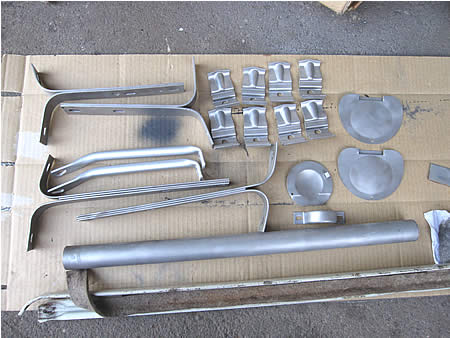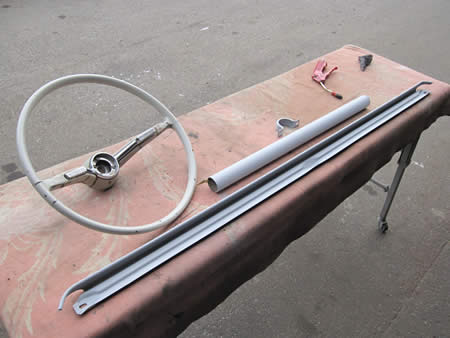 先ずはバンパーステー類、サービスホールのフタ、ステアリングポスト廻りのパーツをブラスト処理しました。