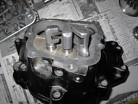 ミディエイトにシフトロッドを組み付け、いよいよ本組みの準備です!