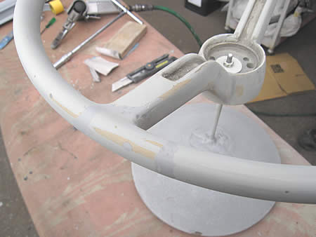 ヒビヒビだったステアリングを樹脂で埋めて、表面を整えます。