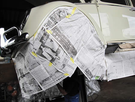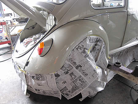 周りに防錆剤が飛ばないようにマスキングをします。