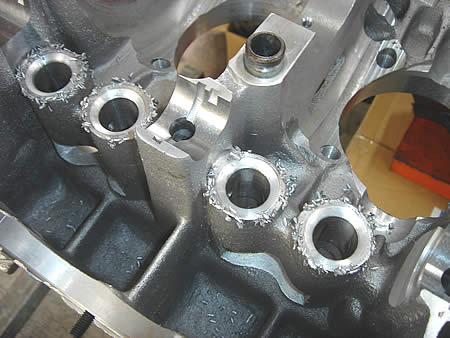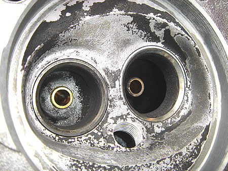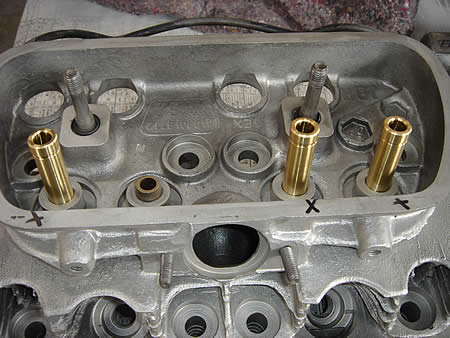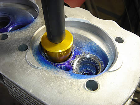 先ずガタがあるバルブガイドを抜き、下処理後に新しいガイドをヘッドに挿入します。