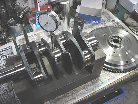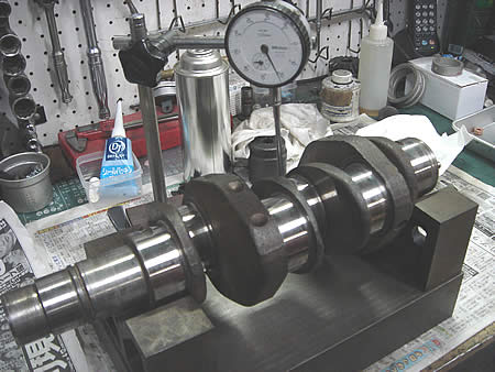 クランクシャフトの各ジャーナルの寸法確認、曲がり確認を行いました。結果は合格でございます!!