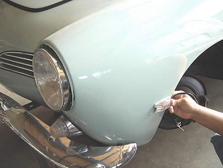 予備検査取得に向けて完成検査&保安部品の取り付けを行っていますが・・・’69〜はサイドマーカーランプが必要です。