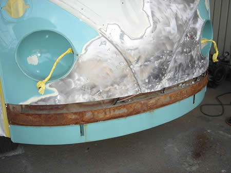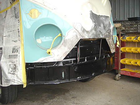 先ずペイントを剥離して下の状態を把握してから、エプロン上10cmぐらいを切開。