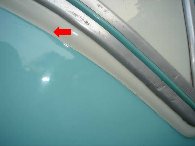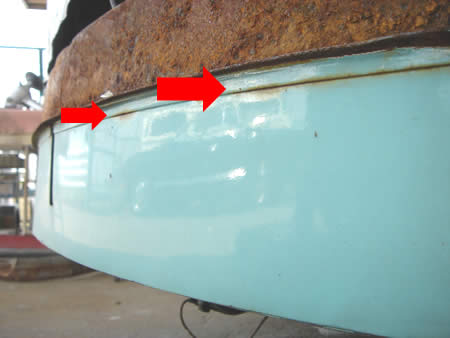 フロントエプロンの合わせ目からも「サビ水」の跡があります。