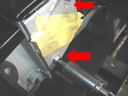 ’68〜のBUSはエンジンサポートが取り付くため、ケースにネジ加工が必要です。(写真→部)