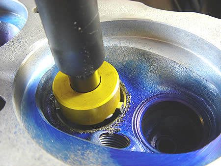 作業途中だった片側のシリンダーヘッド、バルブシートカットを本日早朝より始めました。
