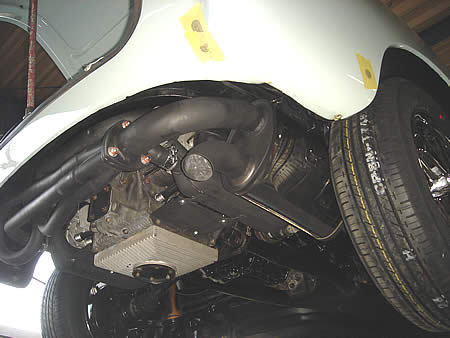 現行のクーラーKITの場合コンデンサーが大きく、フロントドロップされた車高ではロードクリアランスに問題が発生してしまいます。