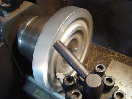 Fディスクのバッキングプレートも取り付けておきました。ロアードスピンドルには取り付けの穴が無いので、穴加工をしての取り付けです。