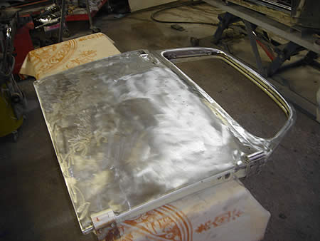 右ドアの面修正、いつもの「お灸」をすえてシェイプアップ!