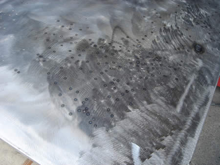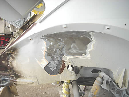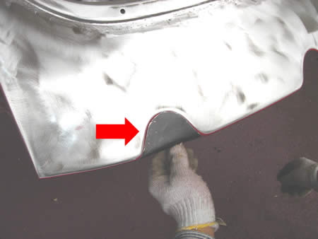 溶接して歪んだエプロンを面修正しています。