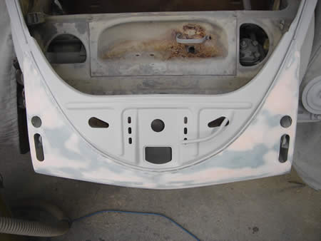 古い板金跡があったため、先ず仮サフェを入れて板金&面修正を進めることにします。
