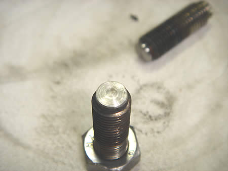 ほとんどのアジャストボルトは、先端が写真左のように凸凹になっています。ここは直接バルブに当たる部分ですので、キレイに修正しなければなりません。
