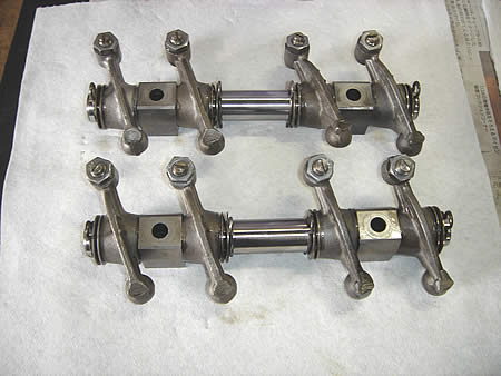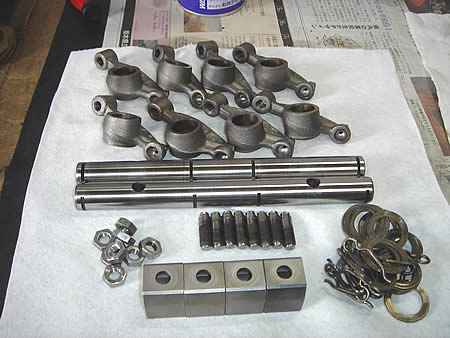 ロッカーシャフトの分解、修正を行っています。