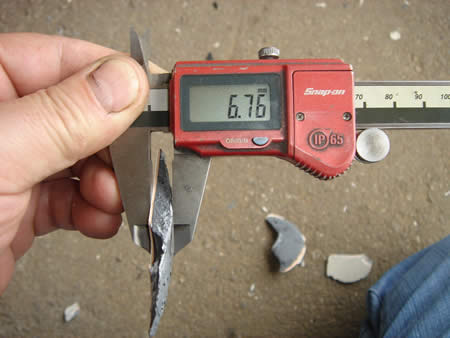 ボディーを固定してサイドパネルを引いたことにより、あってはいけない所に“パテ割れ”が出てしまいました。 剥がしたパテの厚さを測ると・・・約7mm。