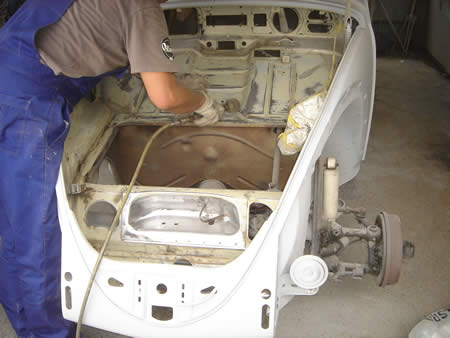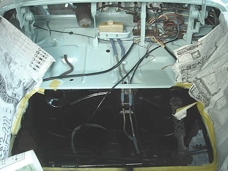 フロントフードシールが入るチャンネルに、この時点で防錆処理を行います。