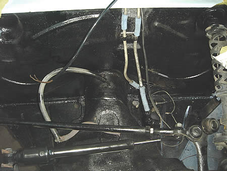 ブレーキのリザーブタンク下はどうしてもサビが発生しているものです・・・。この部分はキレイに剥離を行い防錆処理も同時に行っています。