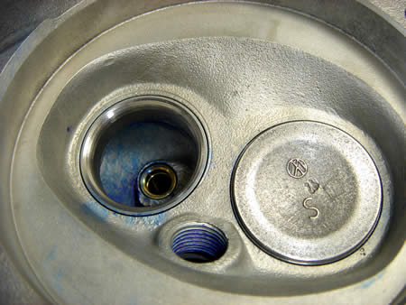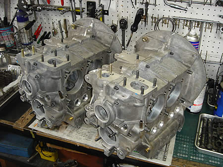 高圧洗浄機で油分を落とし、サンドブラスターでカーボンを落としたシリンダーヘッド!キレイでしょ?