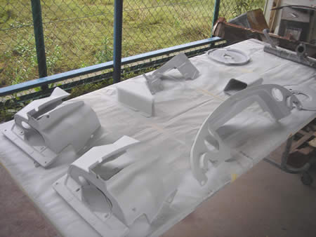 フロントガラス前&リアガラス後ろのスリット部まで剥離を進め、昨夜サフェーサーが入りました!!