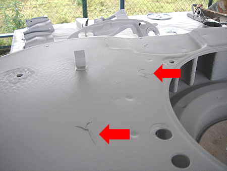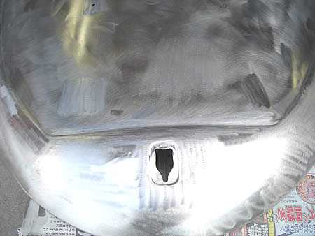 黒っぽく“腺&点”が見えますか?コレが塗装の剥離後に残るサーフェイスラストなんです。