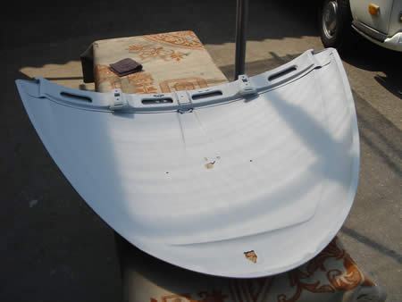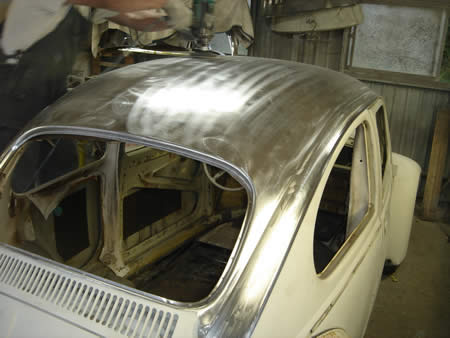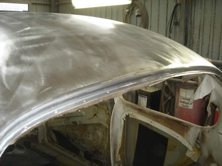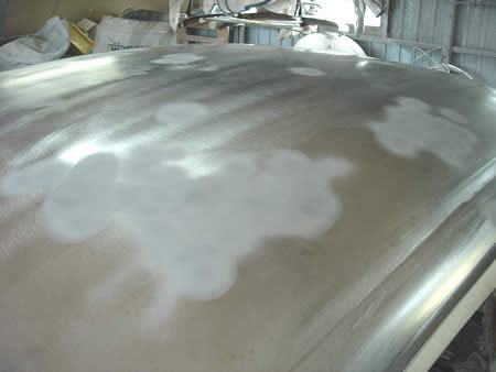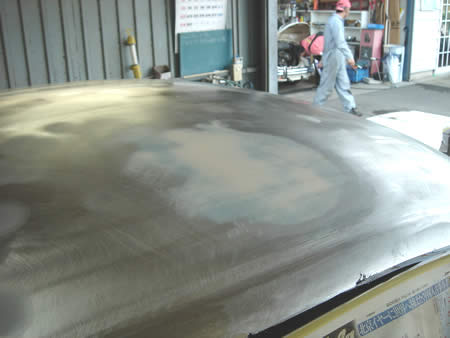 ルーフのへこみは一ヶ所だったのですが、わずかにサーフェースラストがあったためブラスト処理(白い部分)を行いました。