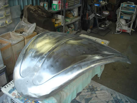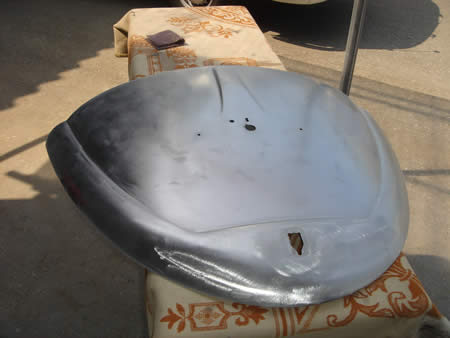 リアフードのブラスト処理&ハンマーリングが完了です!