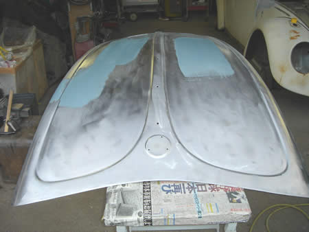 そしてルーフの板金作業はほんの少しの“エクボ”が一ヶ所だけでした。その他はパテ無しのサフェーサーのみで行けます!!優秀!!!
