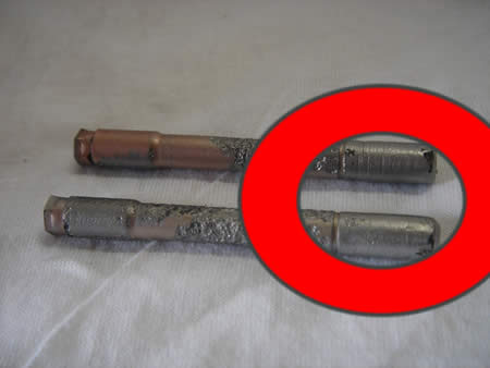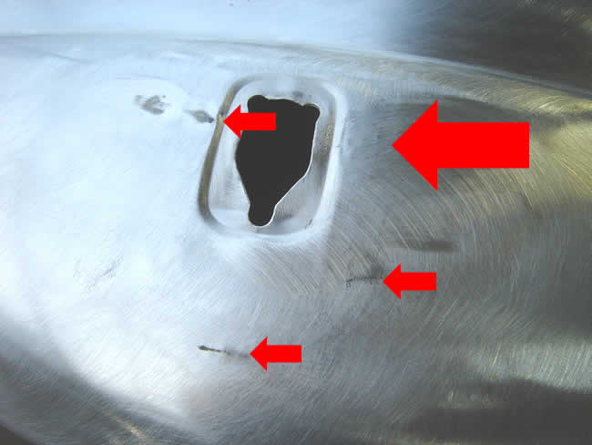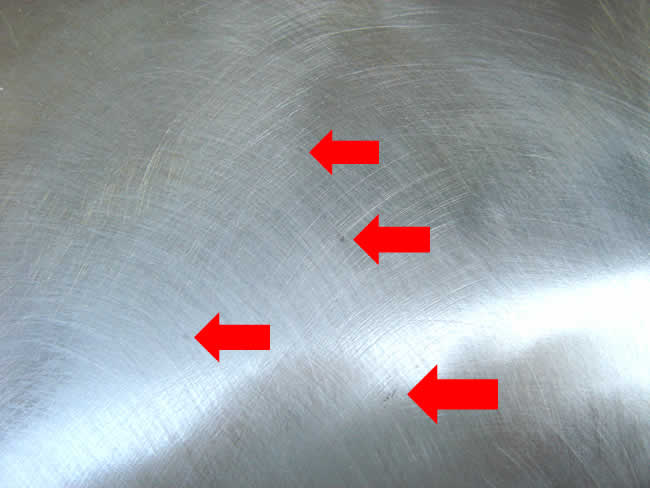 今までにも何回か「サーフェイスラスト」と言う言葉を書きましたが、それはどういモノかといいますと写真中央と右の赤矢印の部分を目を凝らしてみて下さい。