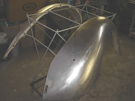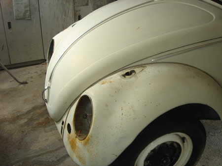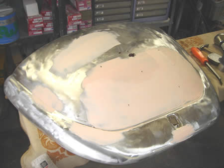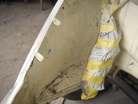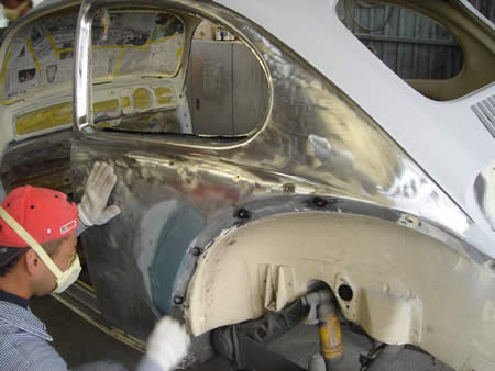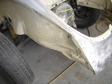 両サイドのクォーターパネルの剥離&面修正を行っています。