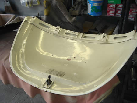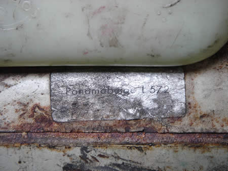 フロントフード内に張られているカラーコードのステッカー&たぶんデリバリー前のなにかのサイン?どちらもオリジナルペイントならではのモノですね!