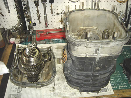 写真中央が’68BUS用で、写真右が’71Westyのミッションです。