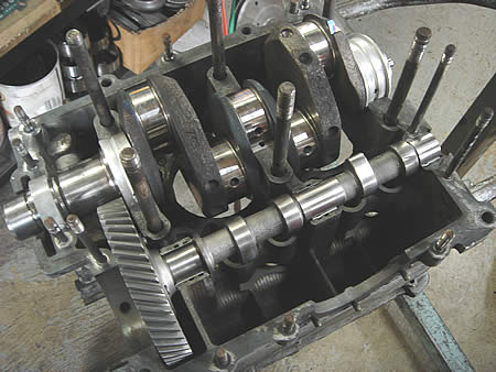 ケースにクランクシャフト&カムシャフトを仮組み、クルクル回ることを確認しました。