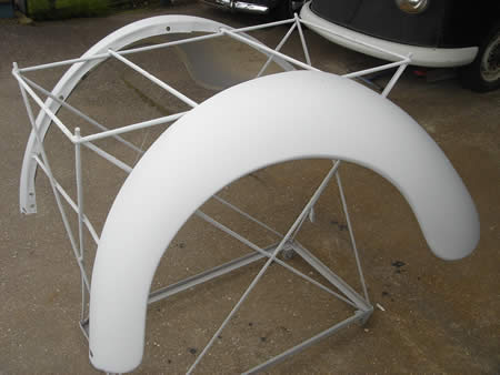 リアフードの剥離&面修正も終わり、サフェーサーが入りました。