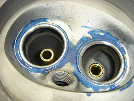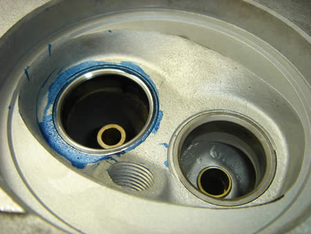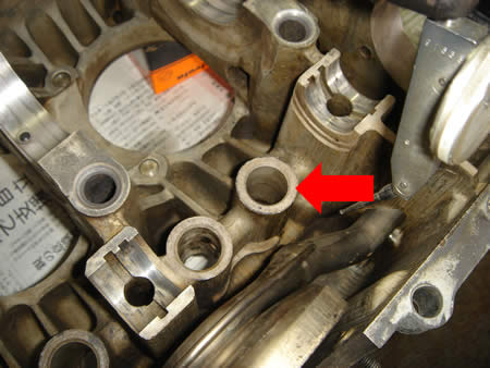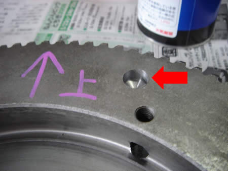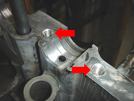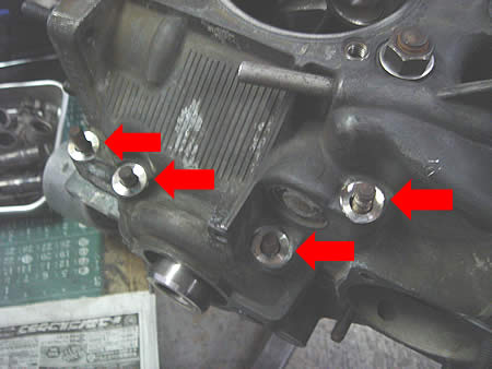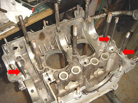 矢印のM8ロングスタッド3ヶ所はケース側のメスネジがナメやすく、ヘリサート加工を行いました。