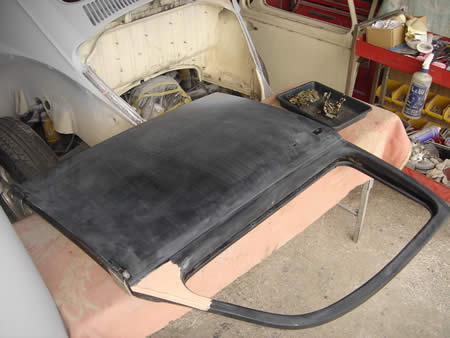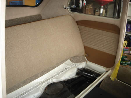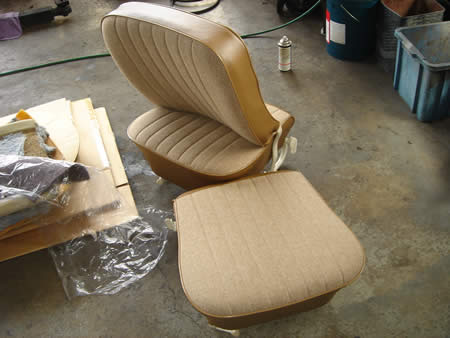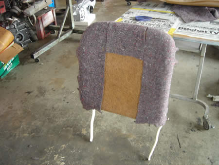 シートパットを交換してフェルトでコーナーを包みカバーを取り付けるのですが、この年式はなかなか手強いです・・・。