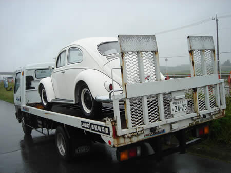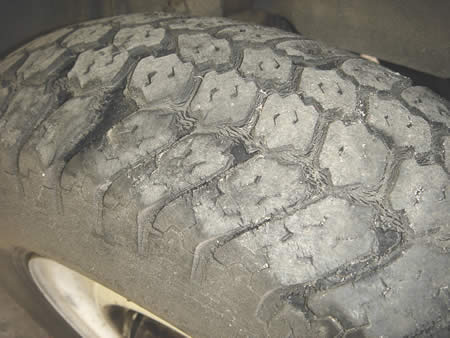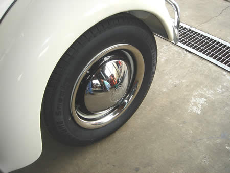 右の写真は’65BUGに付いていたタイヤですが・・・オ〜、デンジャラスゥ〜〜!